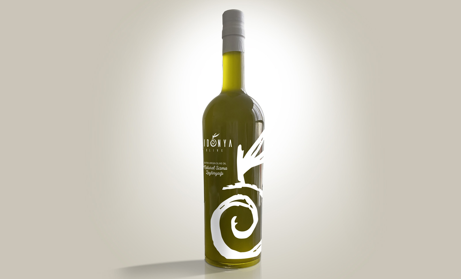 Kidonya markası için tasarladığımız zeytinyağı etiket ambalaj tasarımı